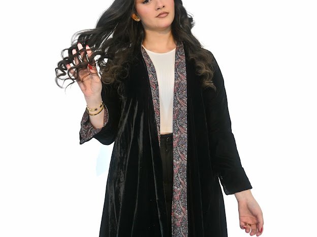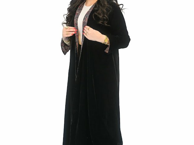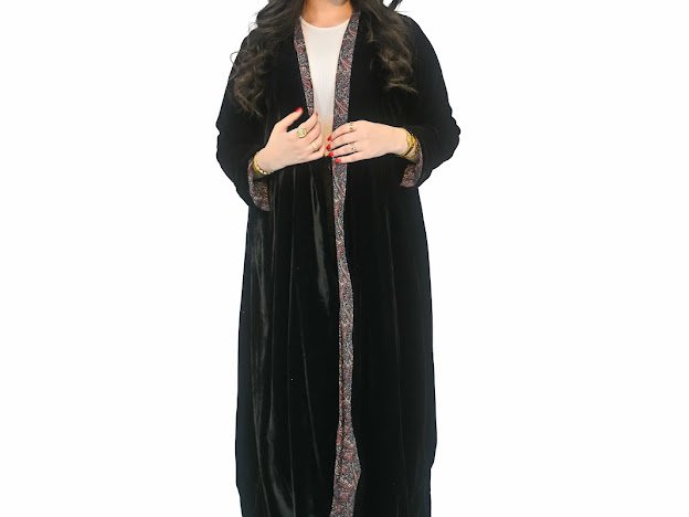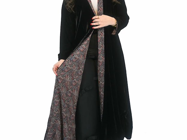 عباية سوداء ببطانة منقوشة